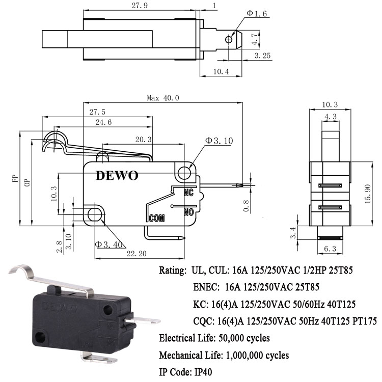 DV-16-A04-NN2-100E型微動開關