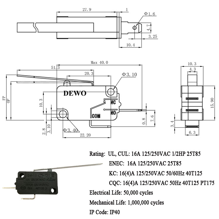 DV-16-A03-NN3-060E型微動開關