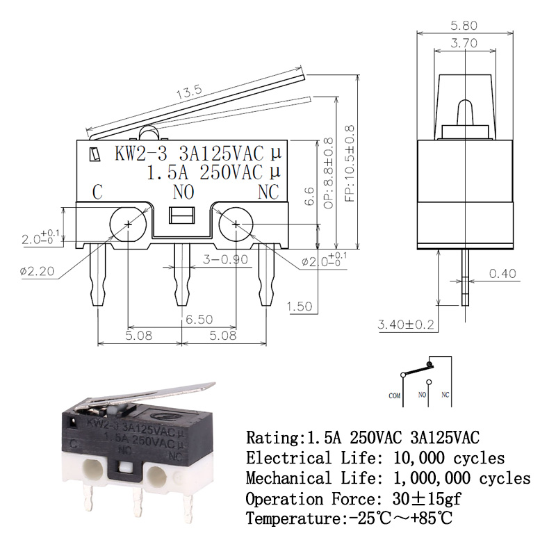 KW2-3-01P-30-5小型微動開關